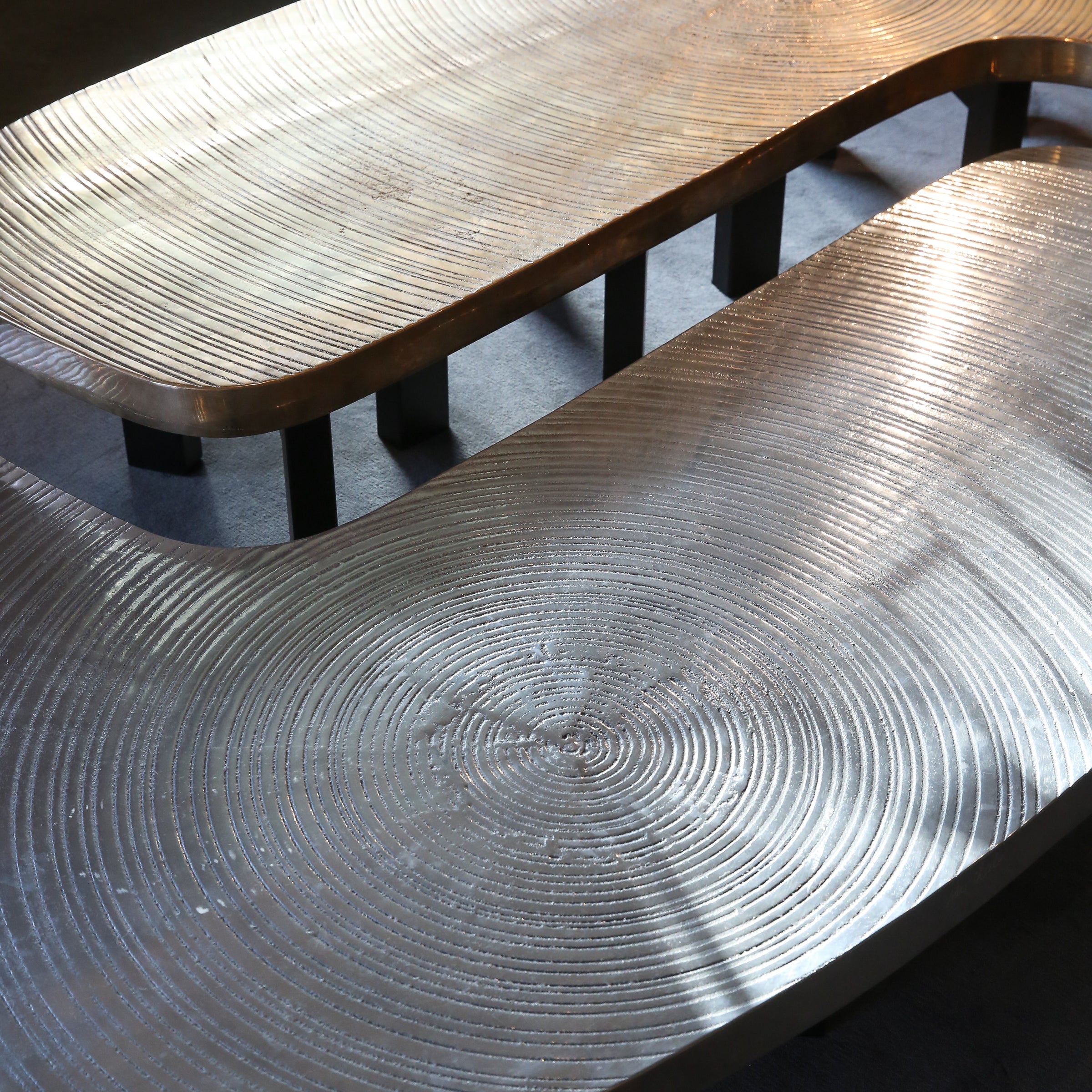 According to Ado Chale, he finds inspiration through his discoveries of new and unusual materials to use in his designs. Incorporating natural patterns and textures made from minerals, iron bronze, and aluminum, he finds the technical challenges of working with these mediums push him to create ever more captivating pieces.