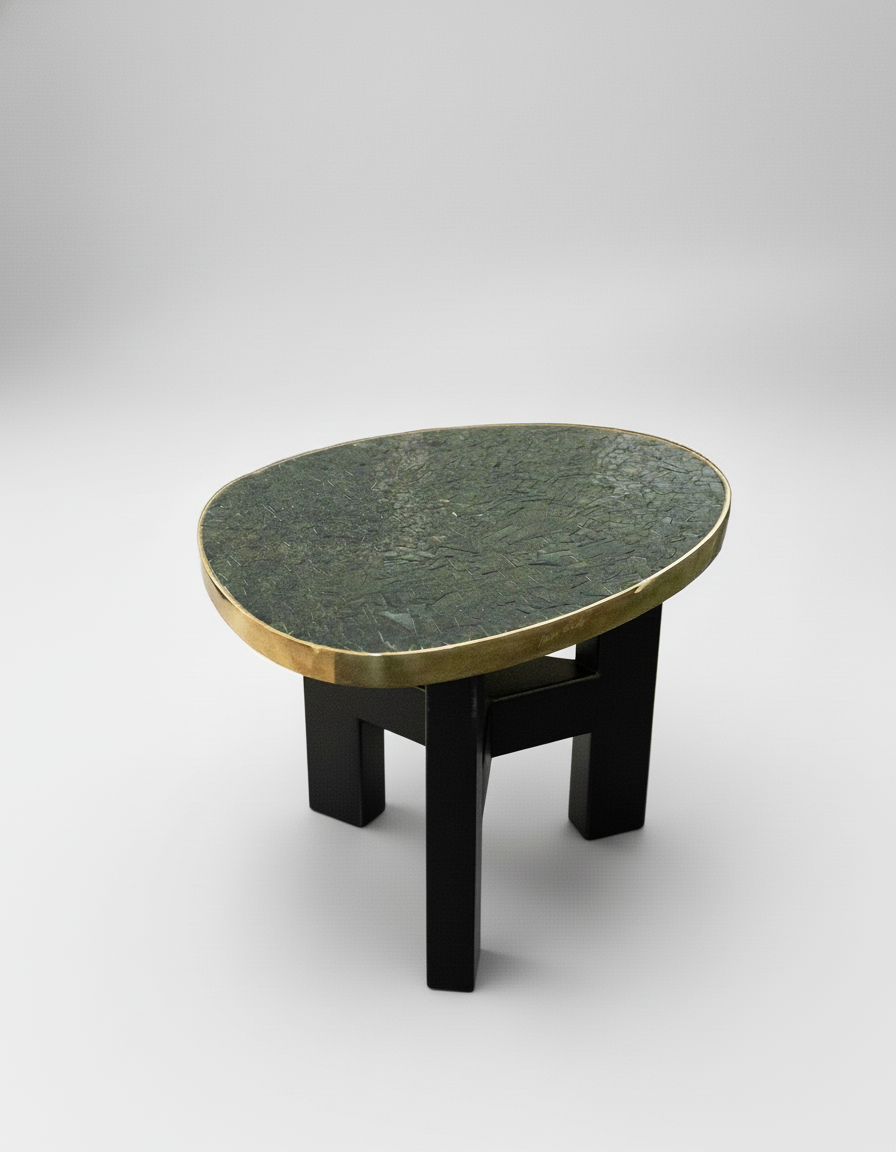 Materials: Heliotrope stone, brass , lacquered steel legs