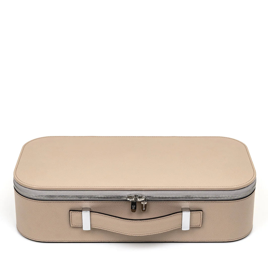 It comes with its sleek storage box, completely covered with genuine calfskin leather. It is ideal for outdoor entertaining or as a perfect gift.