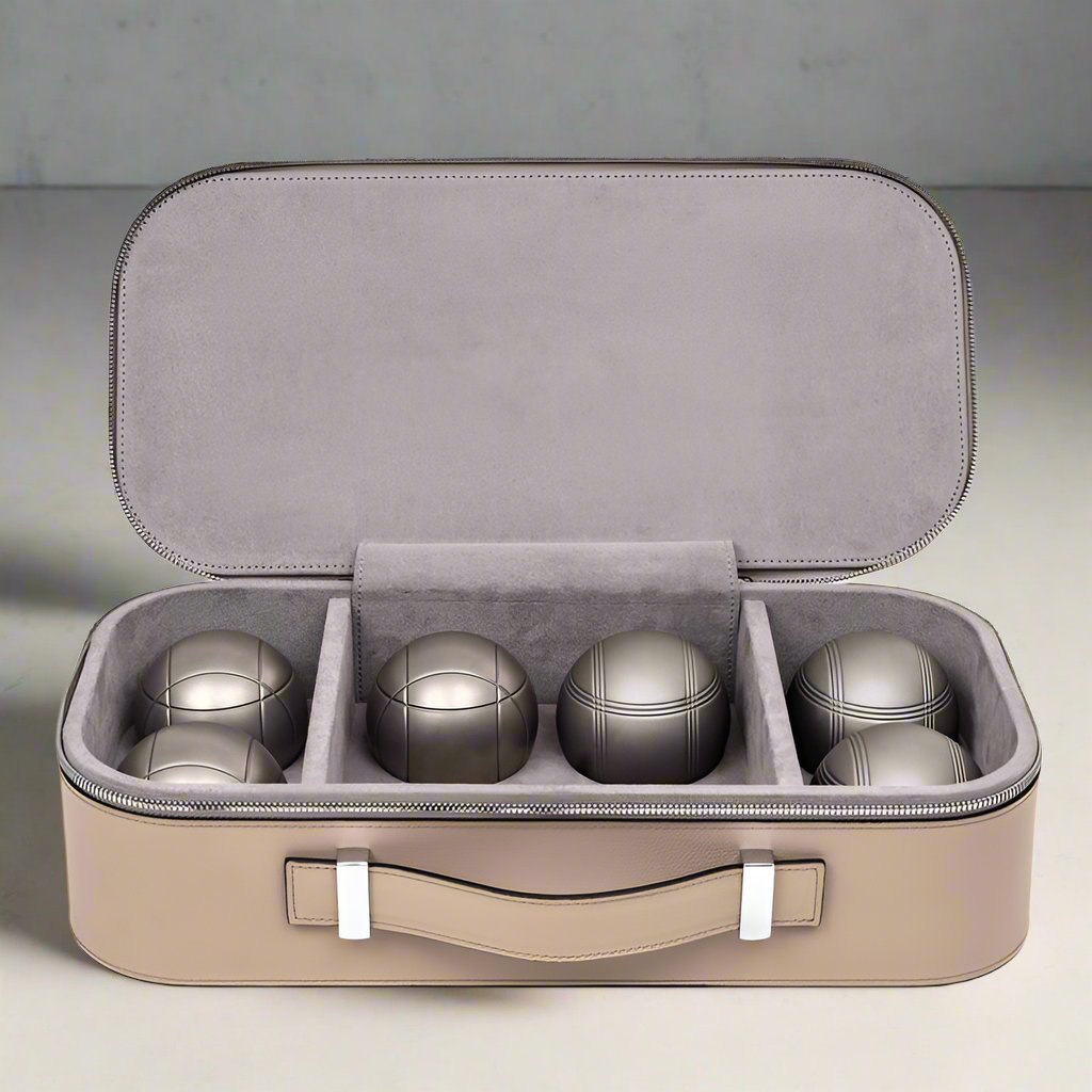 This exquisite Pétanque game set contains 8 metal balls with a wooden jack.