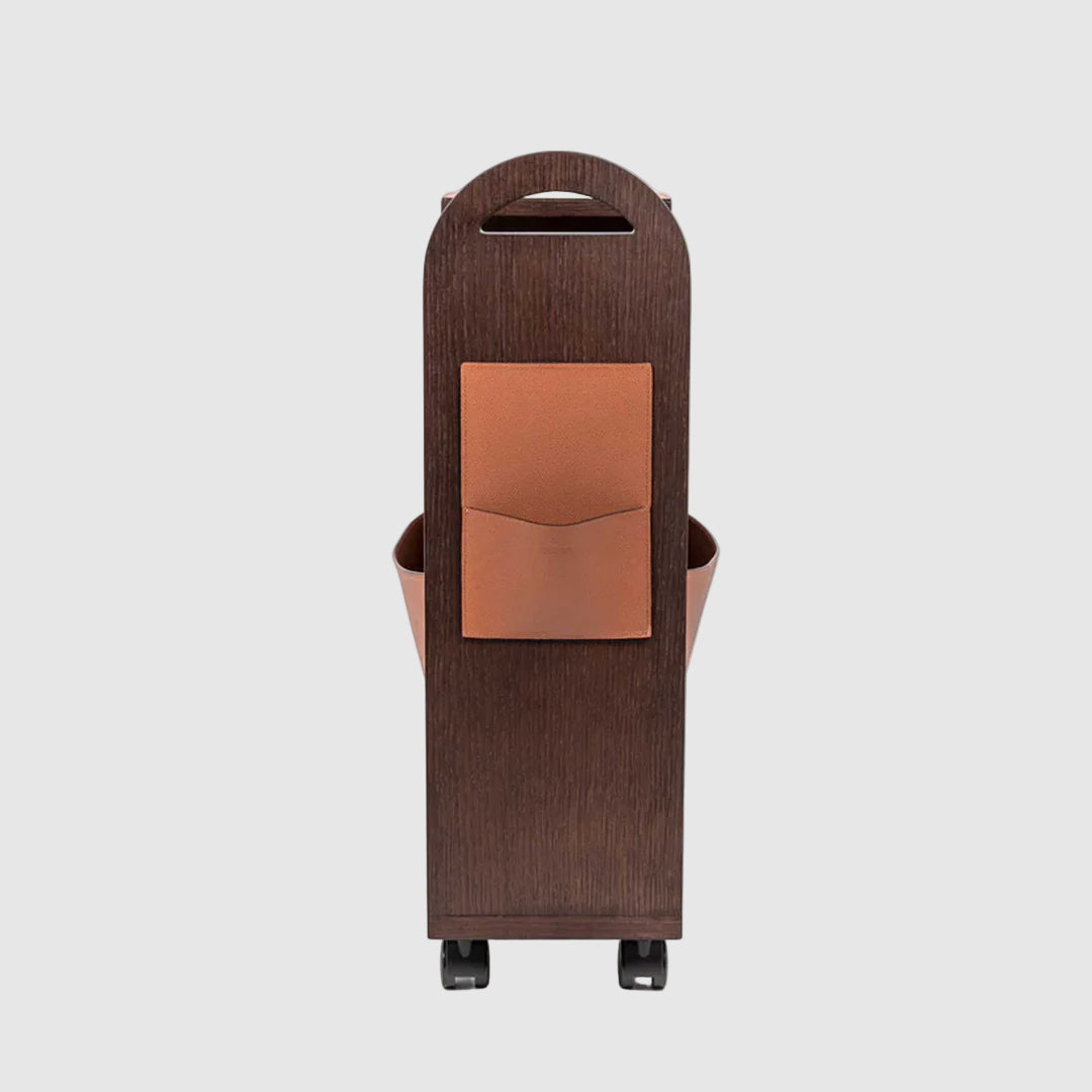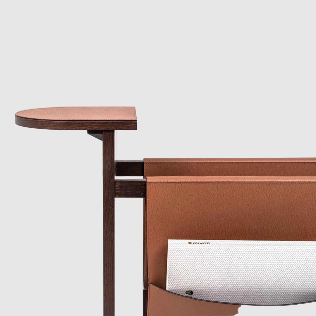 Crafted from oak wood and finished with genuine Italian Liverpool leather details.