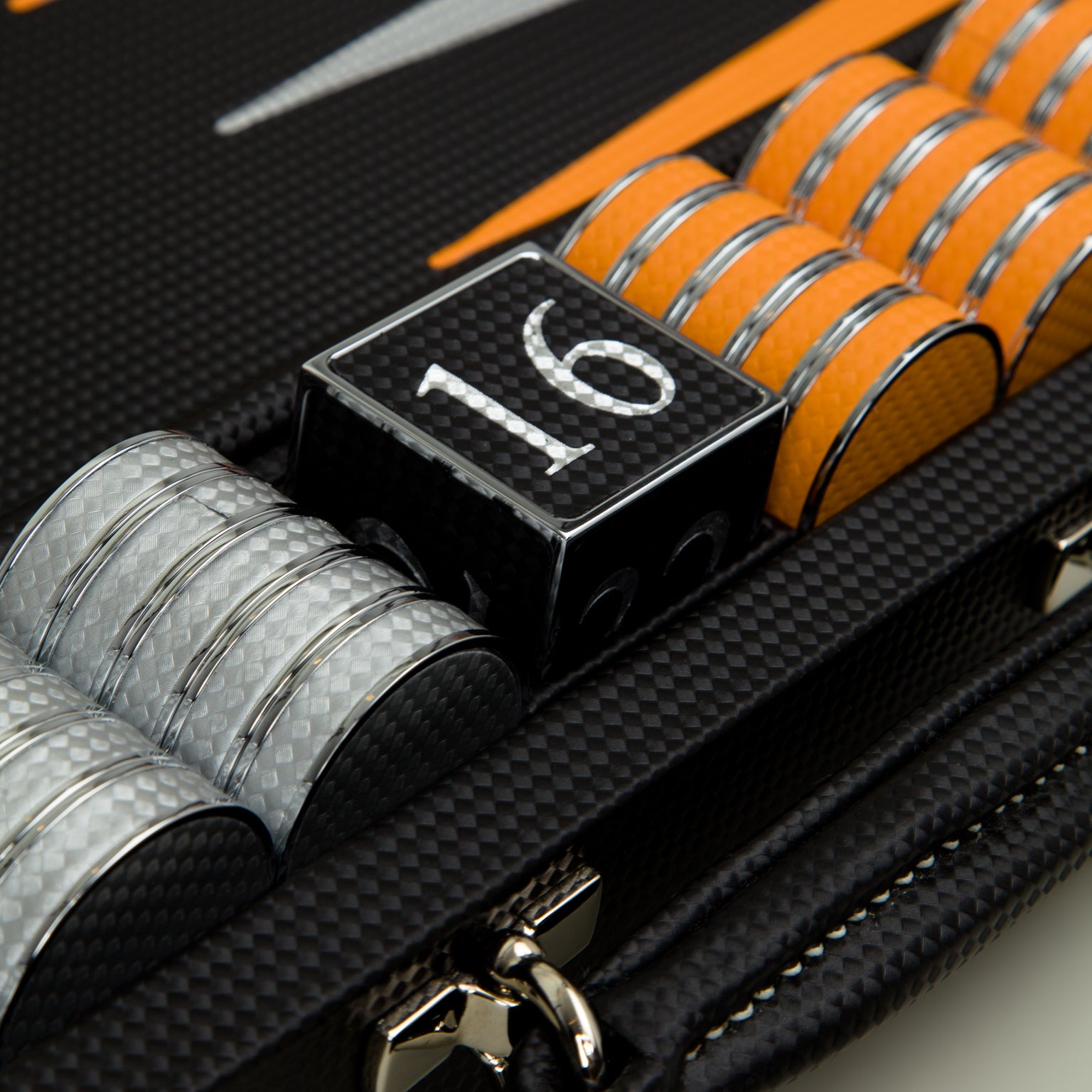 Geoffrey Parker | Carbon Fibre Backgammon in Black/Orange