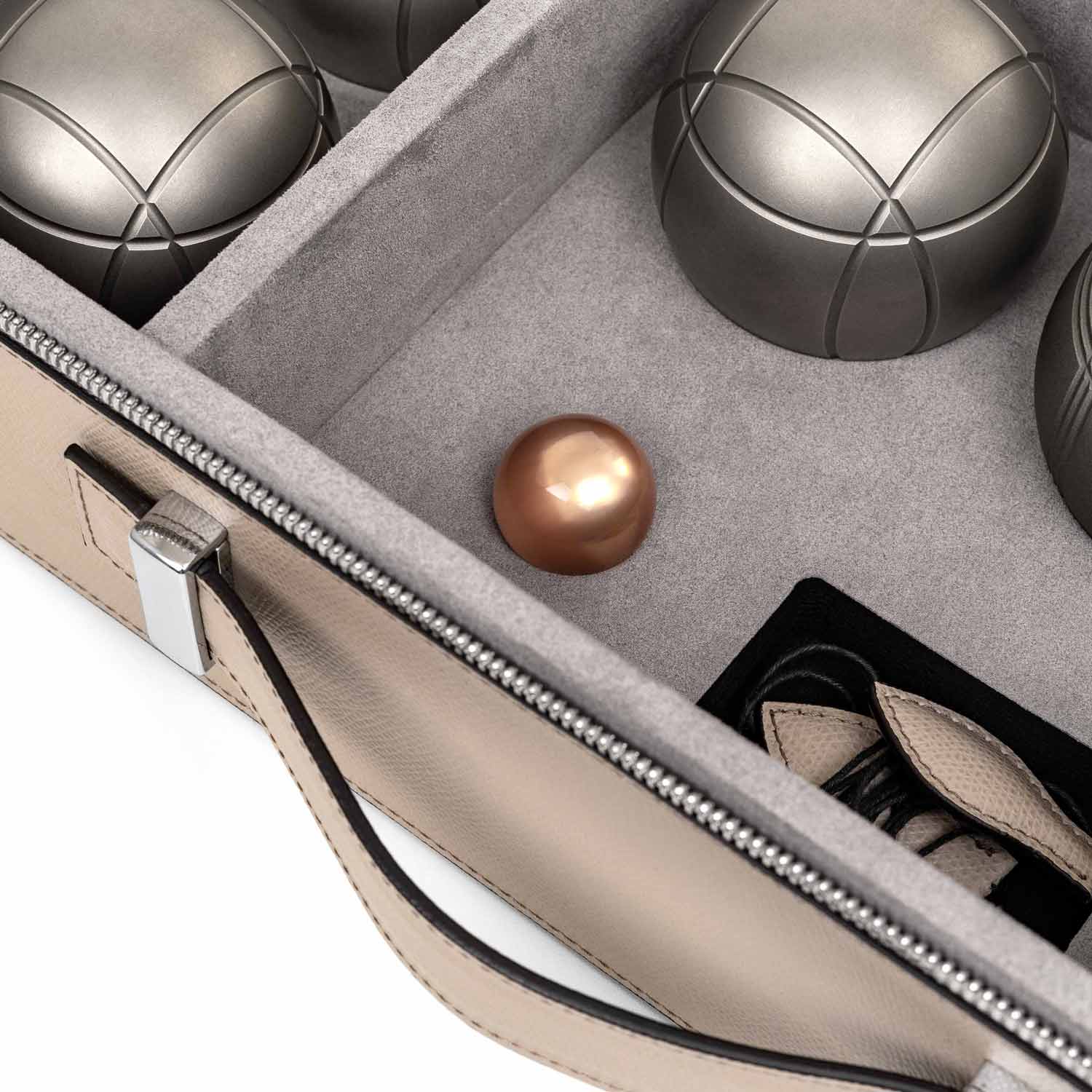 This exquisite Pétanque game set contains 8 metal balls with a wooden jack.