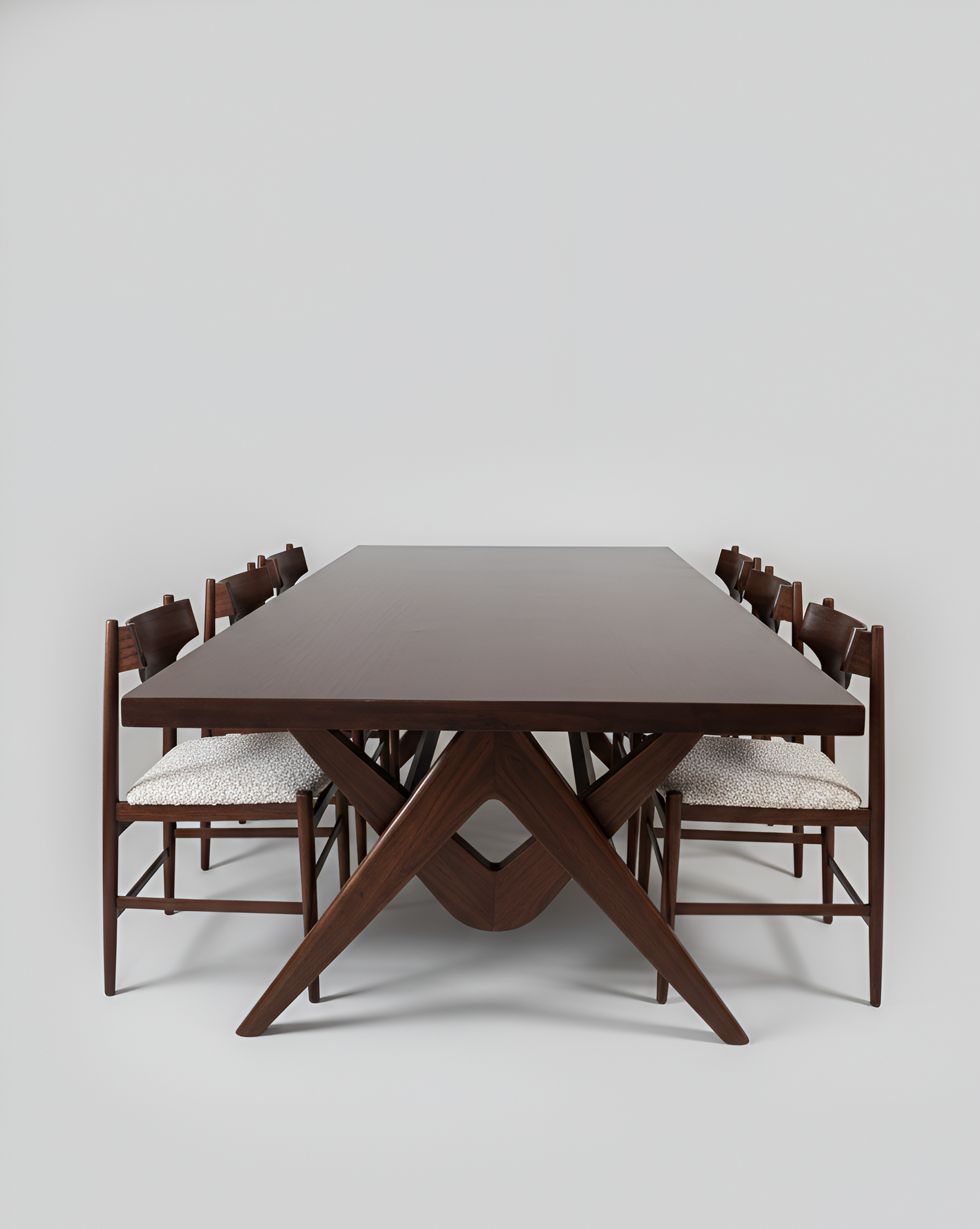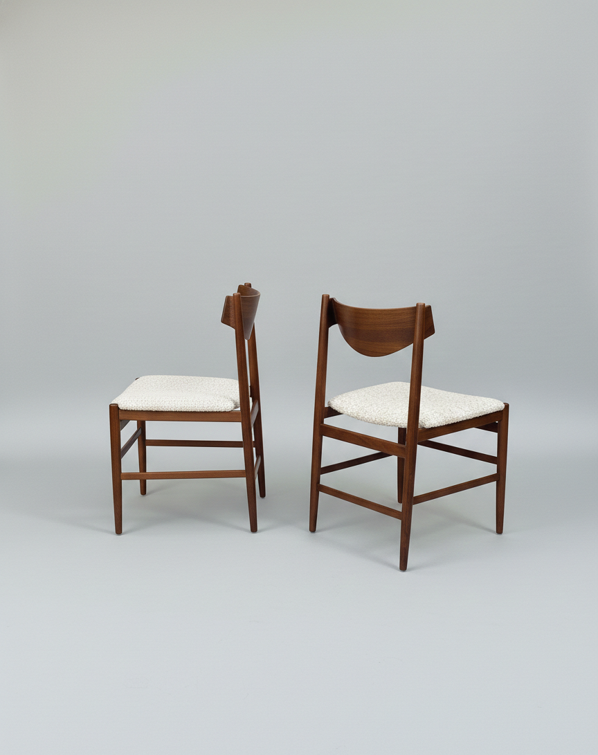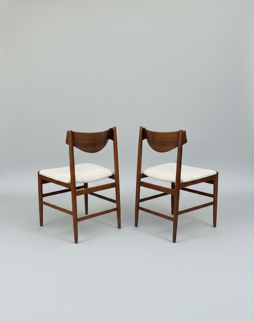 They are made of rosewood with bouclé wool seats.