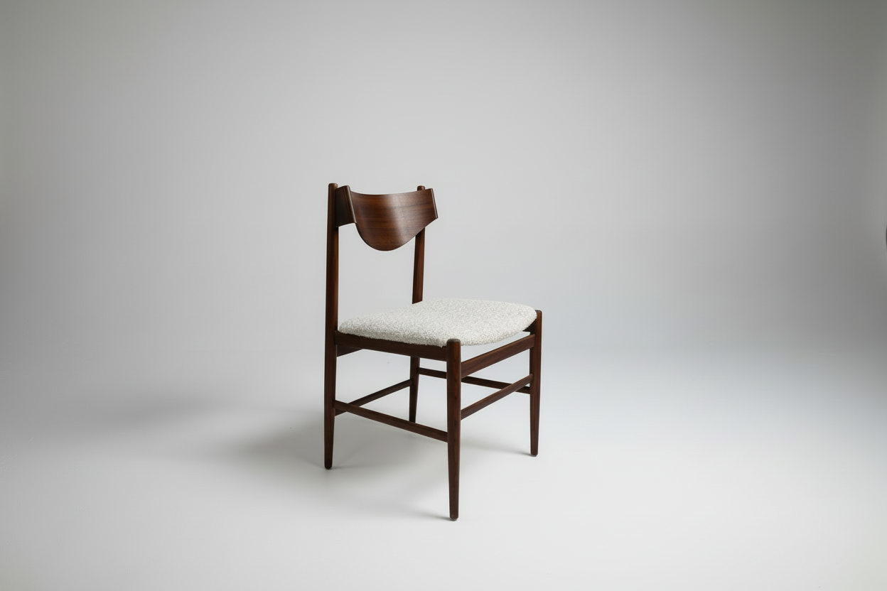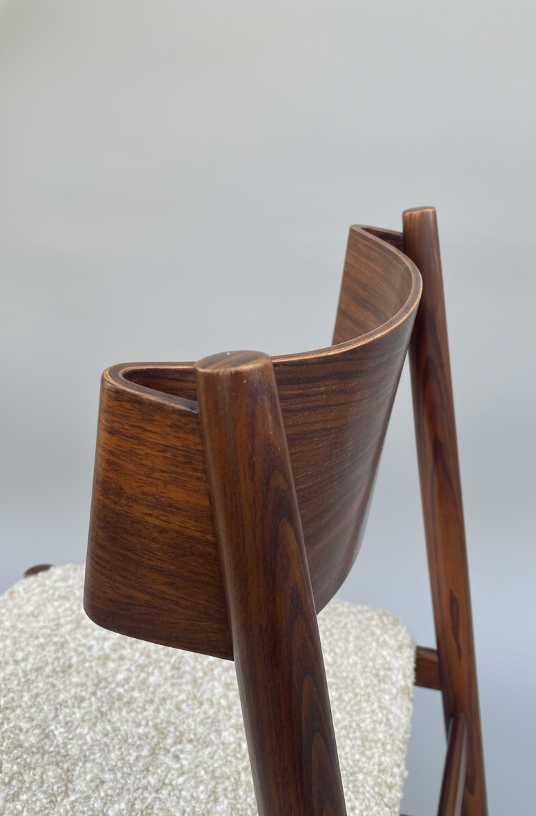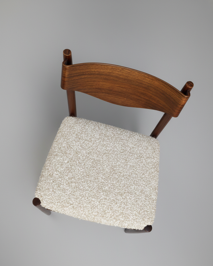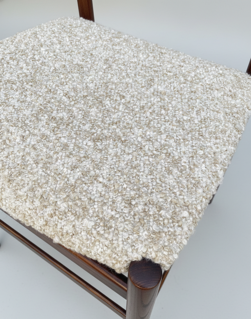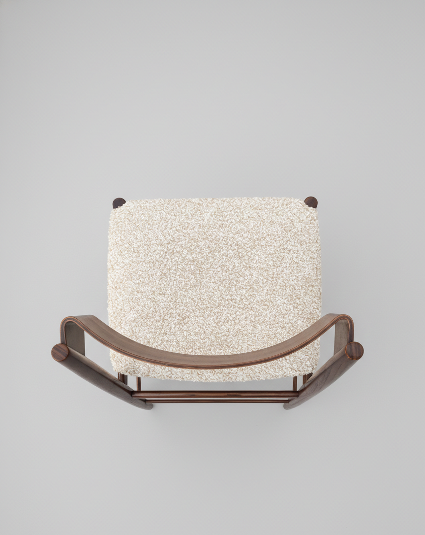 Materials: Rosewood, bouclé wool